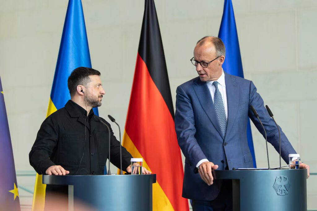 El canciller alemán, Friedrich Merz, y el presidente ucranio, Volodímir Zelenski, han anunciado este martes en Berlín un incremento de la cooperación militar entre los dos países, centrada especialmente en la producción conjunta de drones de medio y largo alcance, de la que Zelenski ha destacado que podría convertirse en “el mayor acuerdo de este tipo en Europa” y del que aún se tienen que fijar plazos y detalles.