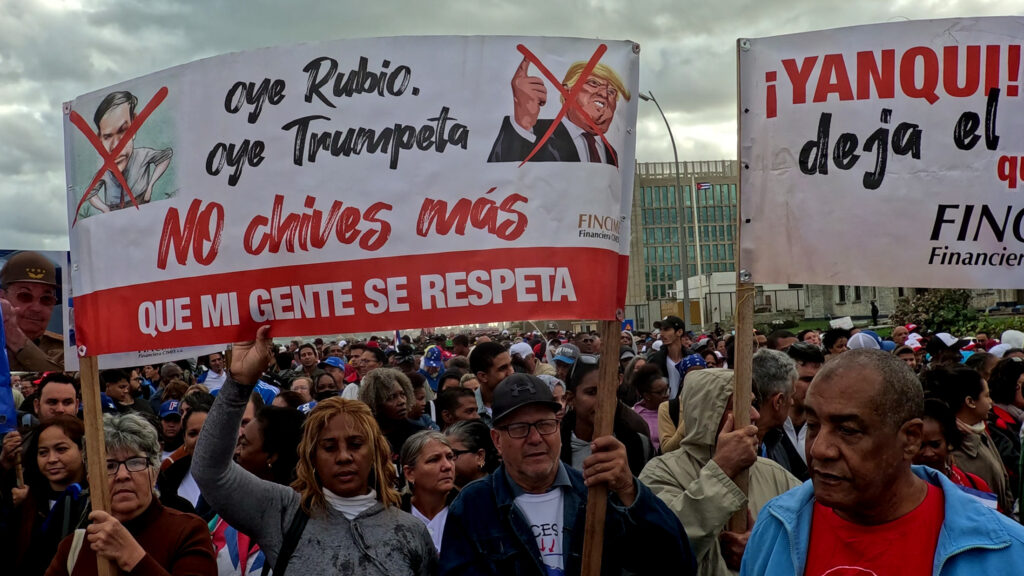 Paralelamente comenzaron a sonar todavía con mayor volumen los tambores de la guerra. El mismo día que su secretario de Estado volvía a plantear la posibilidad de lograr un cambio de régimen, el presidente decía a la prensa que Cuba sería “la siguiente” después que terminara la guerra en Irán. Mientras que unos días antes, el 24 de de marzo, varios miles de ciudadanos de origen cubano se manifestaron a favor de una invasión a Cuba en el Milander Park de Hialeah en Miami.