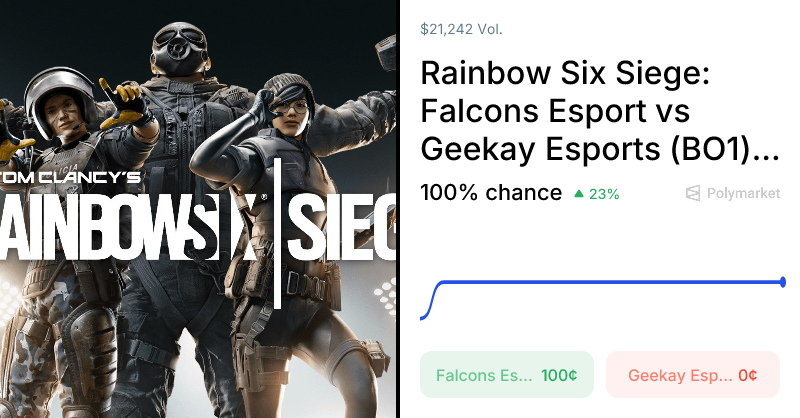 This market refers back to the Rainbow Six Siege match between Falcons Esport and Geekay Esports within the Europe MENA League Kickoff Group B, initially scheduled for April 8 at 1:00PM ET.