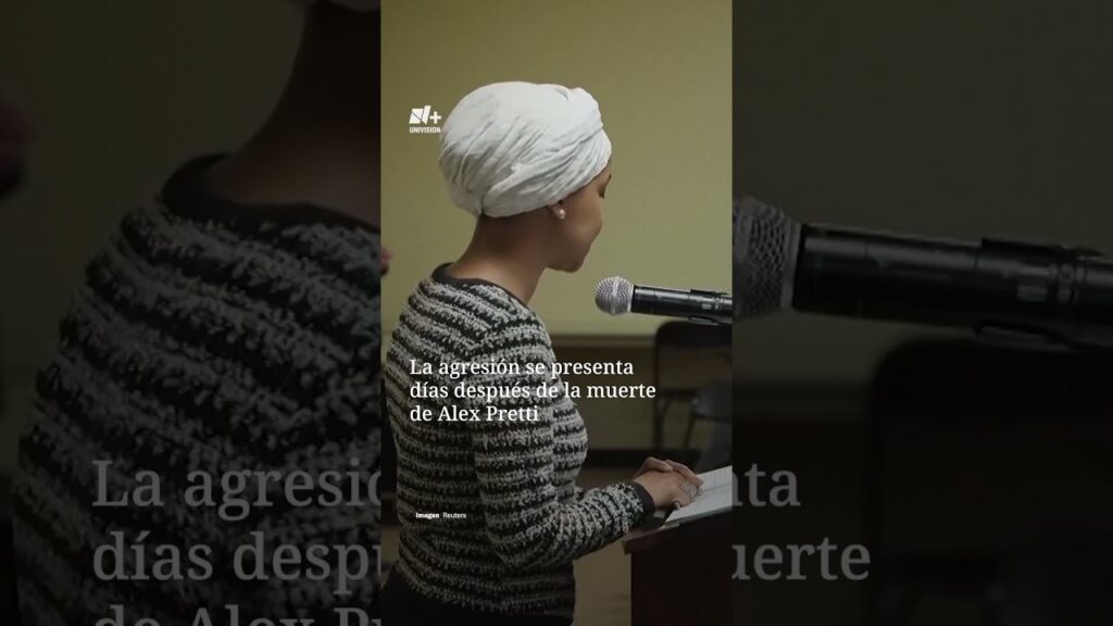 La representante estadounidense Ilhan Omar fue agredida por un hombre que le roció una sustancia desconocida en el cuerpo en un cabildo abierto que ella organizó en Minneapolis este 27 de enero.