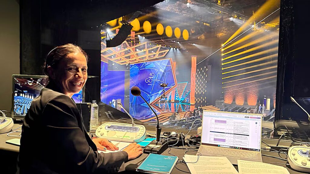 ¿Qué está pasando con la IA y la interpretación? “Ha habido ocasiones en las que, en algunos grandes congresos internacionales, en vez de poner intérpretes humanas, han puesto IA, que crea unos subtítulos que se generan en pantalla en el evento o en la reunión por Zoom”. Pero, a su juicio, la interpretación realizada con IA, con subtítulos en directo, no funciona para un entorno comunicativo de ese tipo.