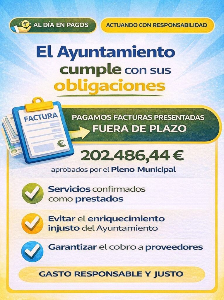 El Pleno ha aprobado el reconocimiento extrajudicial de crédito 2/2026 por importe de 202.486 euros, correspondiente a facturas de ejercicios anteriores.