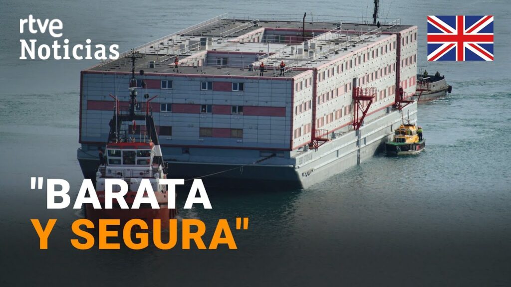 Es una estructura flotante en la que el Gobierno del Reino Unido va a alojar a 500 inmigrantes que solicitan asilo en el país. Una barcaza de tres pisos y más de 200 camarotes que ha atracado en un puerto de Dorset, Londres.