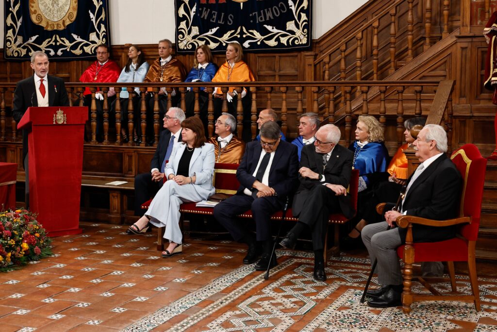 Al rey le gustan estos eventos en los que la literatura no es tan solo la vida pública sino lo que traen los escritores a los que aquí se agasaja. No es que tuviera prisa por escuchar al premio Cervantes de este año, seguro que sí, porque ha leído sus libros y habla de ellos con soltura. Pero la verdad es que su majestad se lanzó pronto a declarar abiertas las solemnidades que tenían como objeto celebrar el premio Cervantes a Gonzalo Celorio. Este estaba solo, cerca de la directora common del Libro, esperando que el rey le diera la palabra al ministro de Cultura, mirando sin duda lo que tuviera que decir como prólogo de todo el rey de los españoles.