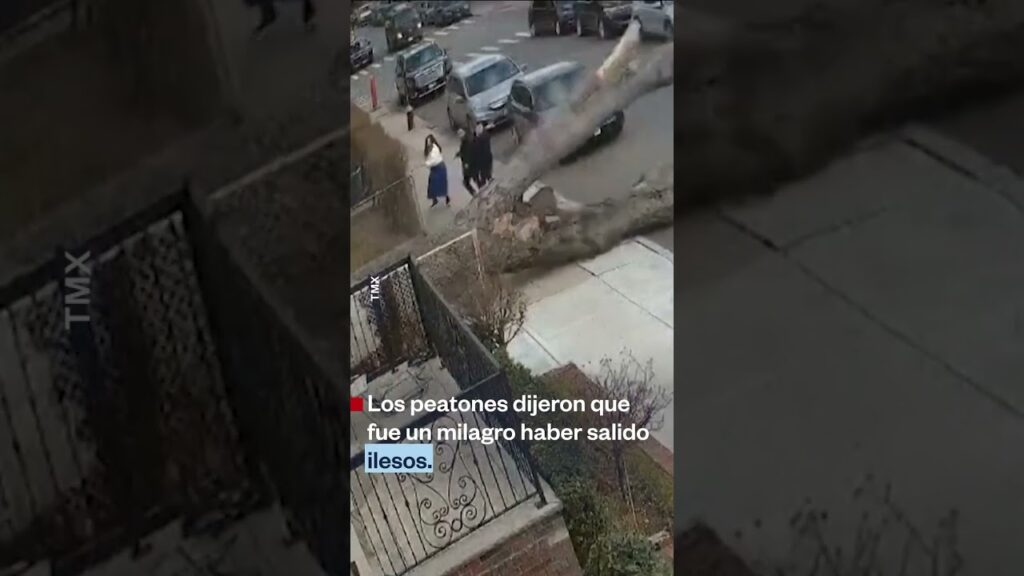Quick oficial de Noticias Telemundo. Tres personas se salvaron por segundos de ser aplastados por un árbol mientras caminaban por un barrio de Brooklyn, en Nueva York.